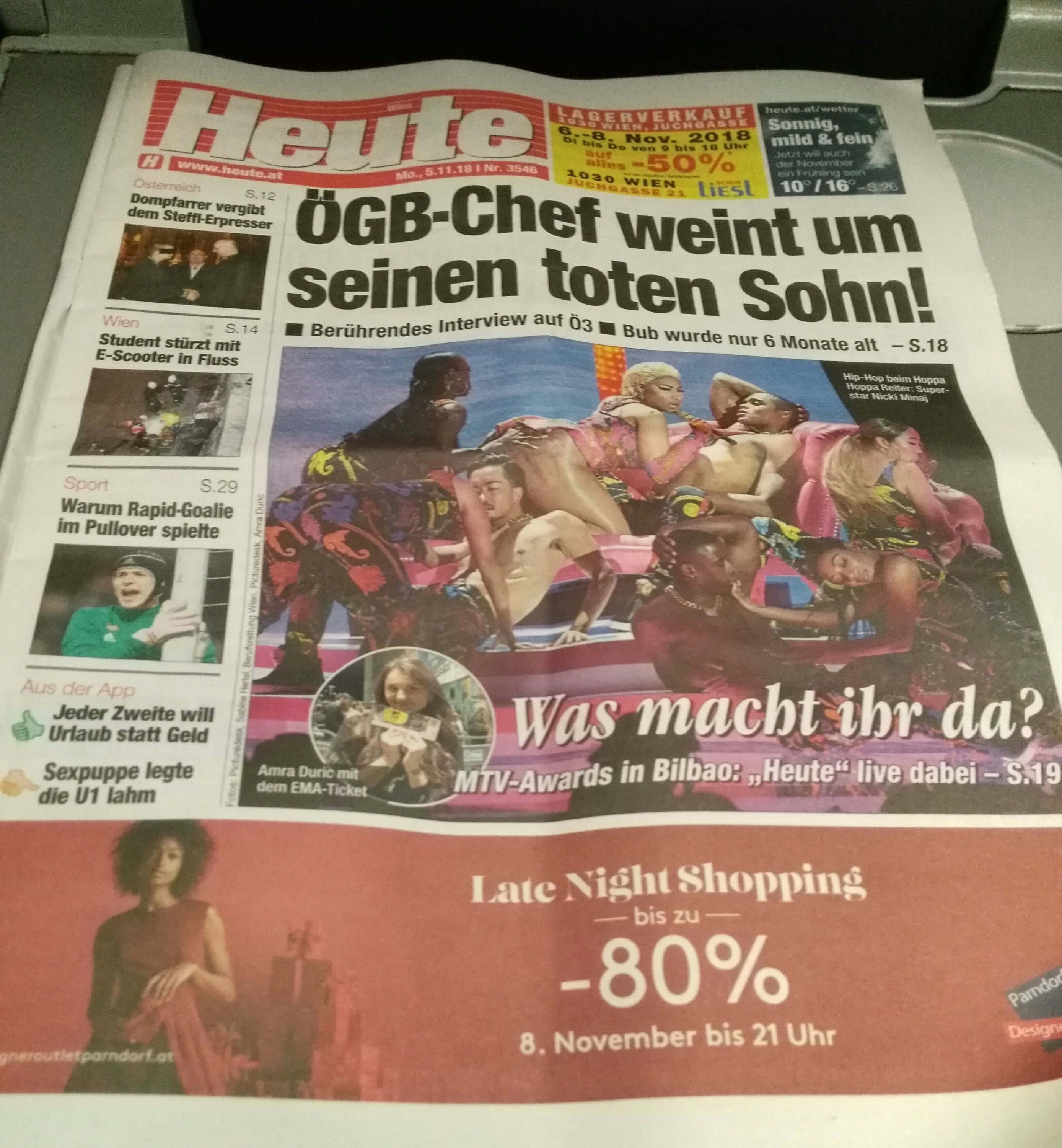 Heute, première page – 11.18 – Photo JYR